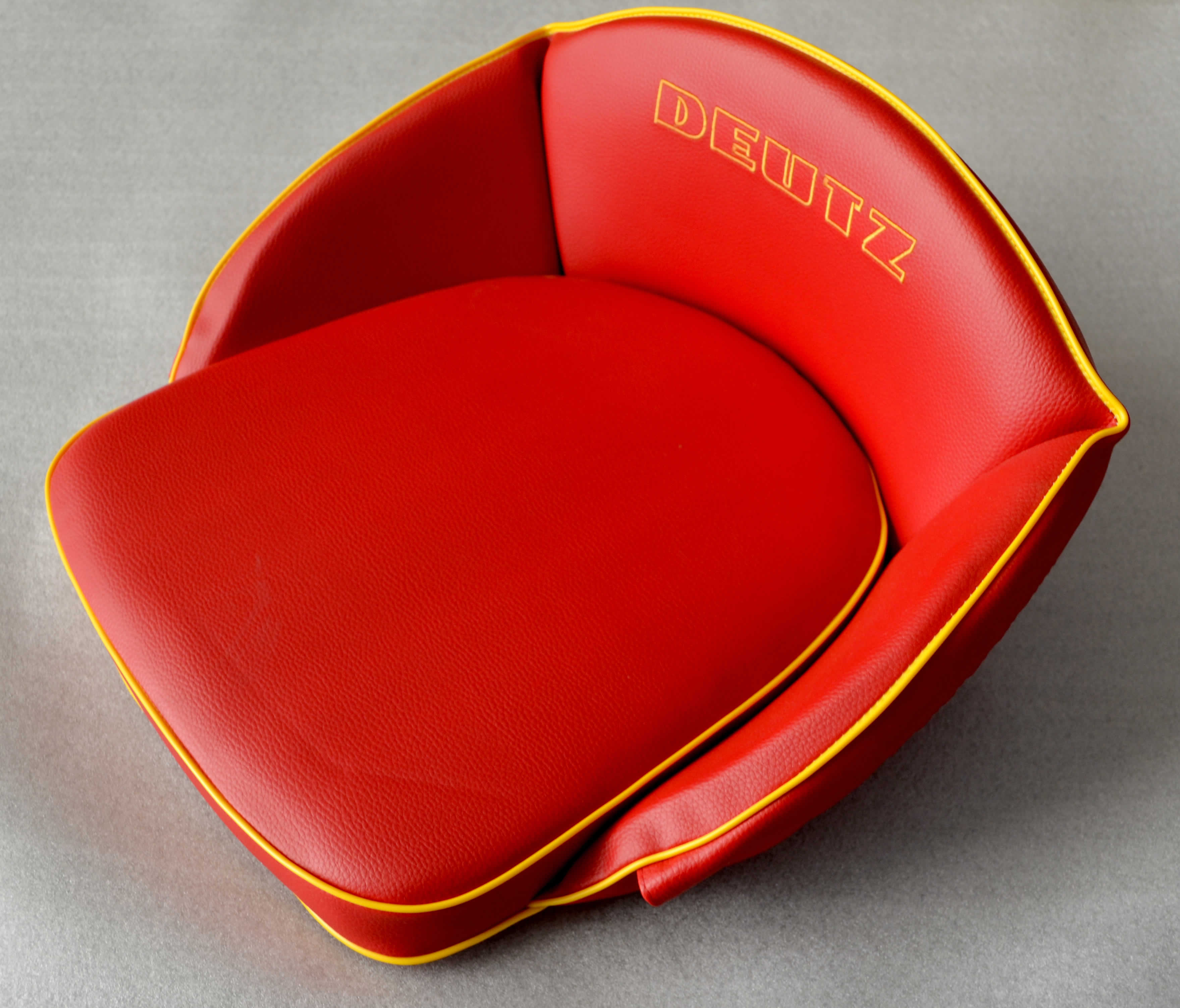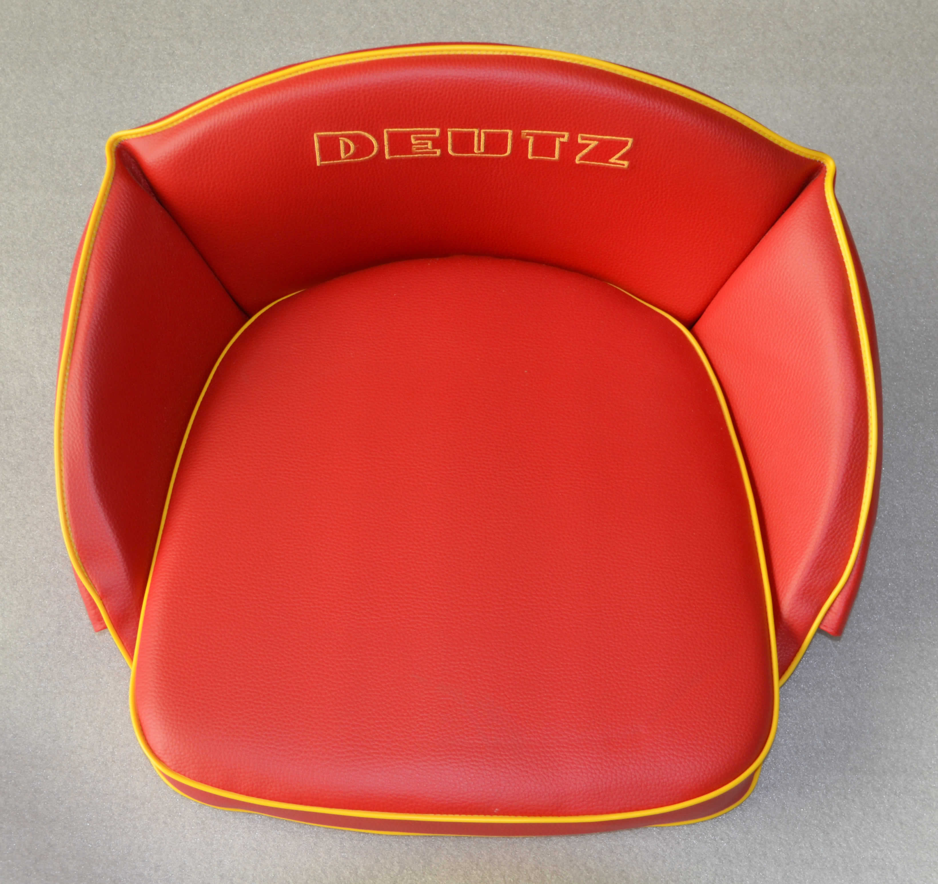 Traktor - Sitzkissen Niedriglehner rot für Deutz mit Aufschrift gestickt